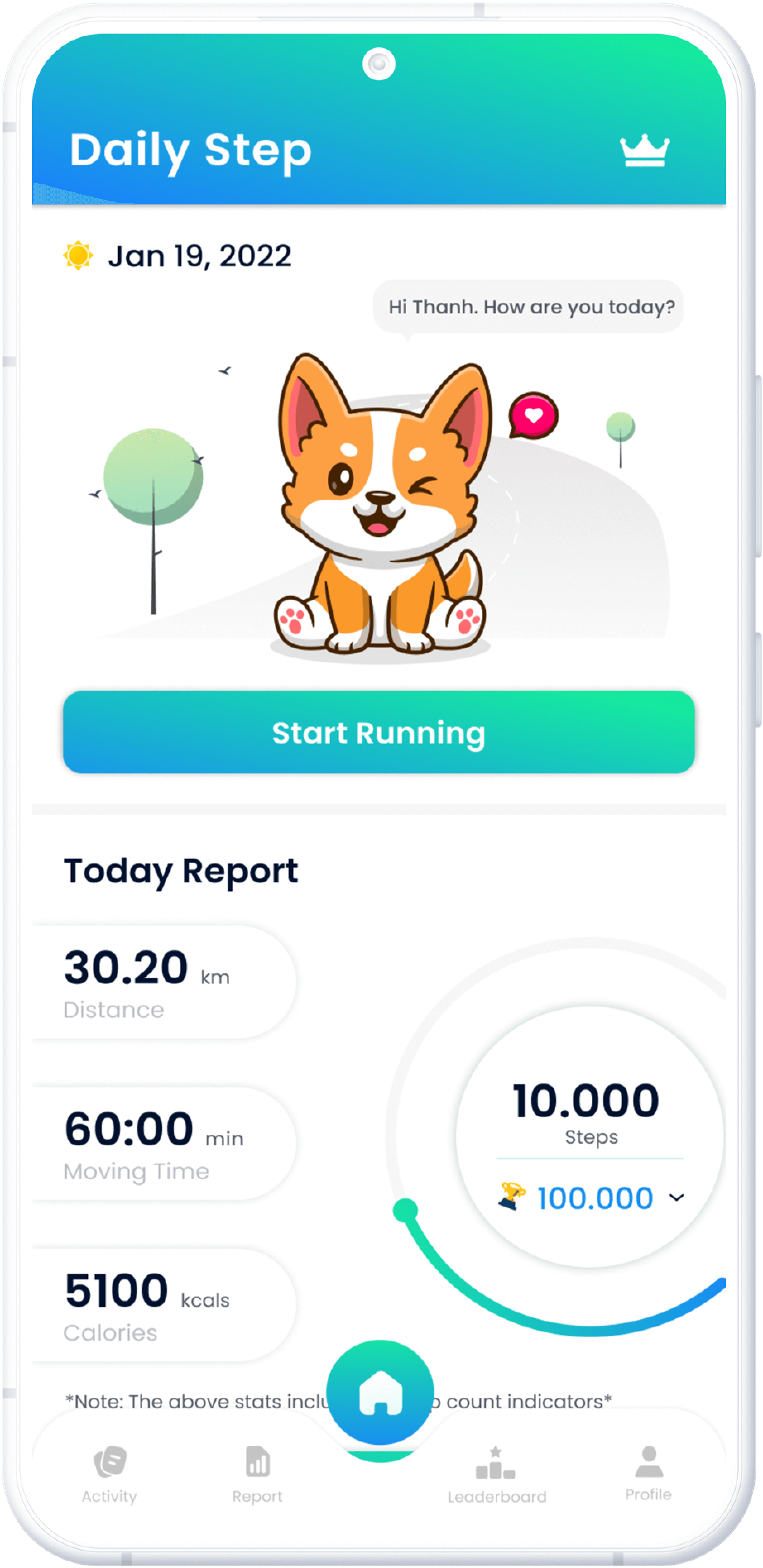 Daily Step motivates you by creating a user performance leaderboard so everyone can see each other's workout results and how their rank. Some other features we created for your entertainment such as a corgi dog as your companion and some achievements to give you more motivation during training.